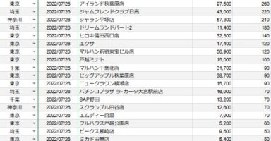 【関東】2022/7/23(土)出したお店まとめ関東の店舗都県 日付 店舗 総差枚 平均差枚 東京 2022/07/23 エスパス日拓新宿歌舞伎町店 222,200 350 東京 2022/07/23 ウインベル・イースト・スロット 59,000 320 東...