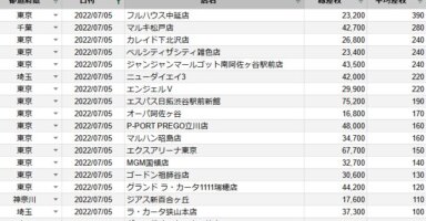 【関東】2022/7/5(火)出したお店まとめ関東の店舗都県 日付 店舗 総差枚 平均差枚 東京 2022/7/5 フルハウス中延店 23,200 390 千葉 2022/7/5 マルキ松戸店 42,700 280 東京 2022/7/5 カレイド下北沢店... -