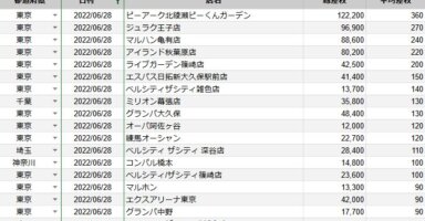 【関東】2022/6/28(火)出したお店まとめ関東の店舗都県 日付 店舗 総差枚 平均差枚 東京 2022/6/28 ピーアーク北綾瀬ピーくんガーデン 122,200 360 東京 2022/6/28 ジュラク王子店 96,900 270 東京 2022/... -
