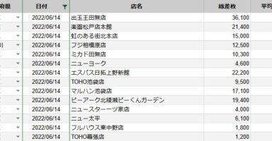 【関東】2022/6/16(木)出したお店まとめ関東の店舗都県 日付 店舗 総差枚 平均差枚 埼玉 2022/6/16 ジャムフレンドクラブ朝霞 125,800 530 埼玉 2022/6/16 ジャムフレンドクラブ日高 68,300 350 東京 2022... -