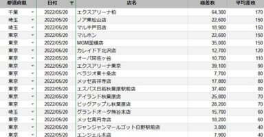 【関東】2022/5/21(土)出したお店まとめ関東の店舗都県 日付 店舗 総差枚 平均差枚 東京 2022/5/21 マルハン新宿東宝ビル店 308,500 630 東京 2022/5/21 エンジェル本店 43,500 220 東京 2022/5/21 ... -