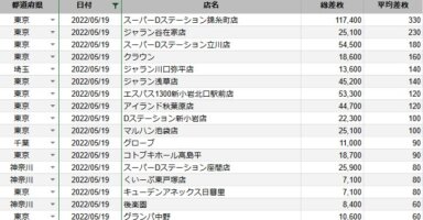 【関東】2022/5/18(水)出したお店まとめ関東の店舗都県 日付 店舗 総差枚 平均差枚 東京 2022/5/18 グランパ中野 44,500 220 東京 2022/5/18 マルハン亀有店 71,100 190 埼玉 2022/5/18 ナビ上尾店 ... -