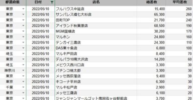 【関東】2022/5/10(火)出したお店まとめ関東の店舗都県 日付 店舗 総差枚 平均差枚 東京 2022/5/10 フルハウス中延店 15,400 260 東京 2022/5/10 サンパレス環七大杉店 65,300 260 東京 2022/5/10 田... -