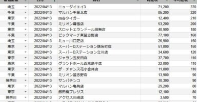【関東】2022/4/13(水)出したお店まとめ関東の店舗都県 日付 店舗 総差枚 平均差枚 埼玉 2022/4/13 ニューダイエイ3 71,200 370 千葉 2022/4/13 マルハン千葉北店 85,200 220 東京 2022/4/13 四谷タ... -