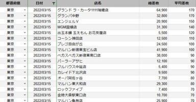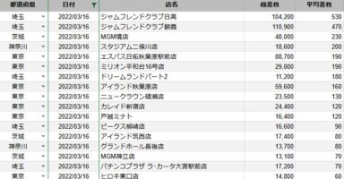 【関東】2022/3/15(火)出したお店まとめ関東の店舗都県 日付 店舗 総差枚 平均差枚 東京 2022/3/15 グランド ラ・カータ1111瑞穂店 64,900 170 東京 2022/3/15 グランパ中野 32,800 170 東京 2022/3... -
