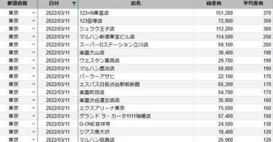 【関東】2022/3/11(金)出したお店まとめ関東の店舗都県 日付 店舗 総差枚 平均差枚 東京 2022/3/11 123+N東雲店 151,200 370 東京 2022/3/11 123笹塚店 72,800 350 東京 2022/3/11 ジュラク... -