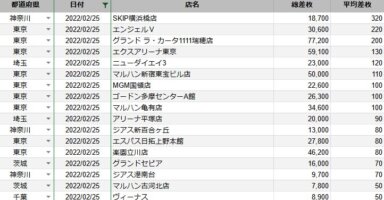 【関東】2022/2/24(木)出したお店まとめ関東の店舗都県 日付 店舗 総差枚 平均差枚 東京 2022/2/24 ピーアーク北綾瀬ピーくんガーデン 83,300 250 東京 2022/2/24 マルハン鹿浜店 61,800 200 東京 2022/2... -