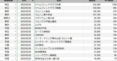 【関東】2022/2/26(土)出したお店まとめ関東の店舗都県 日付 店舗 総差枚 平均差枚 埼玉 2022/2/26 ジャムフレンドクラブ日高 234,400 1180 埼玉 2022/2/26 ジャムフレンドクラブ朝霞 160,600 680 東京 20... -