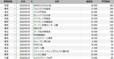 【関東】2022/2/10(木)出したお店まとめ関東の店舗都県 日付 店舗 総差枚 平均差枚 茨城 2022/02/10 ZENTひたちなか店 56,900 280 東京 2022/02/10 フルハウス中延店 11,200 190 埼玉 2022/02/1... -