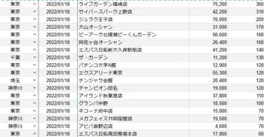 【関東】2022/1/18(火)出したお店まとめ関東の店舗都県 日付 店舗 総差枚 平均差枚 東京 2022/1/18 ライブガーデン篠崎店 75,200 360 東京 2022/1/18 サイバースパーク上野店 42,200 310 東京 2022/1/1...