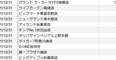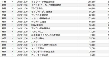【関東】2021/12/31(金)出したお店まとめ関東の店舗都県 日付 店舗 総差枚 平均差枚 東京 2021/12/31 グランド ラ・カータ1111瑞穂店 102,100 260 東京 2021/12/31 ライブガーデン篠崎店 45,200 210 千葉... -
