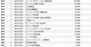 【関東】2021/12/3(金)出したお店まとめ関東の店舗都県 日付 店舗 総差枚 平均差枚 東京 2021/12/3 スーパーDステーション錦糸町店 163,800 460 東京 2021/12/3 サンパレス環七大杉店 57,900 240 東京 202... -