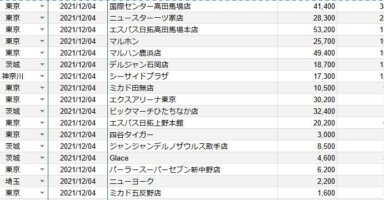 【関東】2021/12/5(日)出したお店まとめ関東の店舗都県 日付 店舗 総差枚 平均差枚 東京 2021/12/05 エスパス日拓渋谷駅前新館 97,900 240 神奈川 2021/12/05 SKIP横浜橋店 14,400 240 東京 2021/1... -