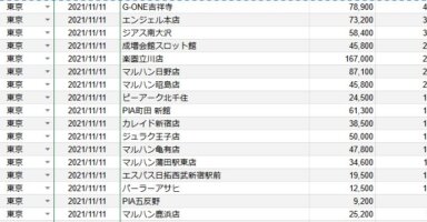 【関東】2021/11/11(木)出したお店まとめ関東の店舗都県 日付 店舗 総差枚 平均差枚 東京 2021/11/11 G-ONE吉祥寺 78,900 400 東京 2021/11/11 エンジェル本店 73,200 380 東京 2021/11/11 ジ... -
