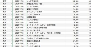 【関東】2021/11/5(金)出したお店まとめ関東の店舗都県 日付 店舗 総差枚 平均差枚 東京 2021/11/5 メッセ吉祥寺店 108,900 440 東京 2021/11/5 成増会館スロット館 47,400 300 東京 2021/11/5 マル... -