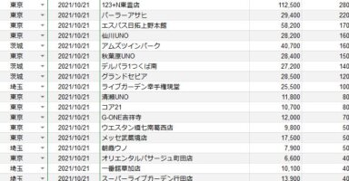【関東】2021/10/21(木)出したお店まとめ関東の店舗都県 日付 店舗 総差枚 平均差枚 東京 2021/10/21 123+N東雲店 112,500 280 東京 2021/10/21 パーラーアサヒ 29,400 220 東京 2021/10/21 ... -