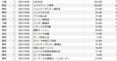 【関東】2021/10/8(金)出したお店まとめ関東の店舗都県 日付 店舗 総差枚 平均差枚 千葉 2021/10/8 KIZUNA8 102,200 710 東京 2021/10/8 エクスアリーナ東京 200,800 420 東京 2021/10/8 ベ... -