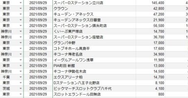 【関東】2021/9/29(水)出したお店まとめ関東の店舗都県 日付 店舗 総差枚 平均差枚 東京 2021/9/29 スーパーDステーション立川店 145,400 480 東京 2021/9/29 クラウン 42,800 360 東京 2021/9/29 ... -