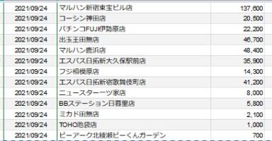 【関東】2021/9/24(金)出したお店まとめ関東の店舗都県 日付 店舗 総差枚 平均差枚 東京 2021/9/24 マルハン新宿東宝ビル店 137,600 280 東京 2021/9/24 コーシン神田店 20,500 170 神奈川 2021/9/24... -