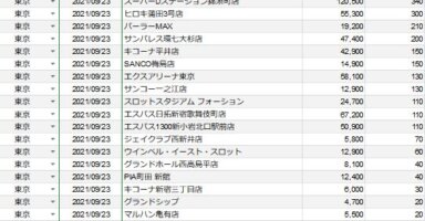 【関東】2021/9/23(木)出したお店まとめ関東の店舗都県 日付 店舗 総差枚 平均差枚 東京 2021/9/23 スーパーDステーション立川店 152,200 510 東京 2021/9/23 スーパーDステーション錦糸町店 120,500 340 東...