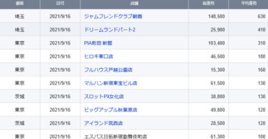 【関東】2021/9/16(木)出したお店まとめ関東の店舗都県 日付 店舗 総差枚 平均差枚 埼玉 2021/9/16 ジャムフレンドクラブ朝霞 148,500 630 埼玉 2021/9/16 ドリームランドパート2 25,900 410 東京 2021/... -