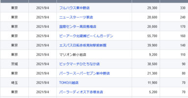 【関東】2021/9/4(土)出したお店まとめ関東の店舗都県 日付 店舗 総差枚 平均差枚 東京 2021/9/4 フルハウス東中野店 29,300 330 東京 2021/9/4 ニュースター一ツ家店 28,600 240 東京 2021/9/4 国際セ... -