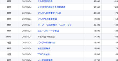 【関東】2021/8/24(火)出したお店まとめ関東の店舗都県 日付 店舗 総差枚 平均差枚 東京 2021/8/24 ミカド五反野店 53,800 410 東京 2021/8/24 エスパス日拓新大久保駅前店 93,500 300 東京 2021/8/24... -