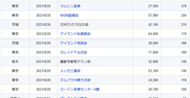 【関東】2021/8/20(金)出したお店まとめ関東の店舗都県 日付 店舗 総差枚 平均差枚 東京 2021/8/20 ベラジオ東十条店 30,300 320 茨城 2021/8/20 PX牛久店 72,300 300 東京 2021/8/20 マルシン笹塚... -