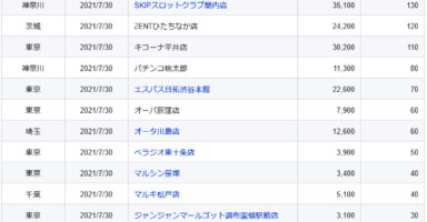 【関東】2021/7/30(金)出したお店まとめ関東の店舗都県 日付 店舗 総差枚 平均差枚 東京 2021/7/30 ビッグアップル秋葉原店 175,900 430 東京 2021/7/30 TOYO HALL 49,200 430 東京 2021/7/3... -