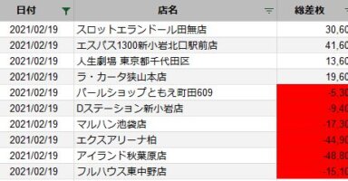 【関東】2021/2/19(金)出したお店まとめ関東の店舗都県 日付 店舗 総差枚 平均差枚 東京 2021/2/19 スロットエランドール田無店 30,600 130 東京 2021/2/19 エスパス1300新小岩北口駅前店 41,600 90 東京 2... -