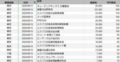 【関東】2020/8/14(金)出したお店まとめ関東の店舗都道府県 日付 店舗 総差枚 平均差枚 東京 2020/8/14 123笹塚店 44,000 350 東京 2020/8/14 エスパス日拓上野新館 78,000 220 東京 2020/8/14 楽... -