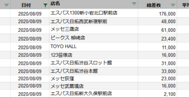 【関東】2020/8/8(土)出したお店まとめ関東の店舗都道府県 日付 店舗 総差枚 平均差枚 東京 2020/8/8 マルハン亀有店 160,000 460 東京 2020/8/8 123笹塚店 43,000 330 東京 2020/8/8 楽園渋谷駅前... -
