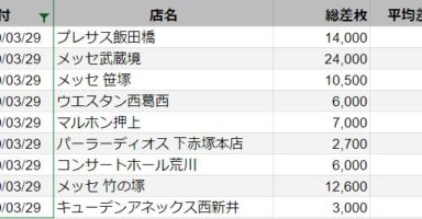 2020/3/29(日) -出したお店まとめ関東の店舗日付 店舗 総差枚 平均差枚 2020/3/29 プレサス飯田橋 14,000 77 2020/3/29 メッセ武蔵境 24,000 56 2020/3/29 メッセ 笹塚 10,500 54 202... -