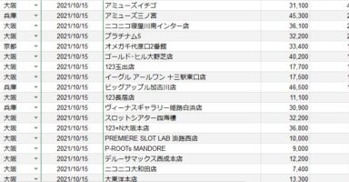 【関西】前日差枚ランキング 2021/10/15(金)関西の店舗府県 日付 店舗 総差枚 平均 大阪 2021/10/15 アミューズイチゴ 31,100 470 兵庫 2021/10/15 アミューズ三ノ宮 45,300 290 大阪 2021/10/15 ニコ... -