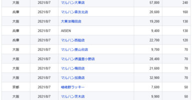 【関西】前日差枚ランキング 2021/8/7(土)関西の店舗府県 日付 店舗 総差枚 平均 京都 2021/8/7 京都駅前ラッキー 50,600 440 京都 2021/8/7 シルク 51,600 380 京都 2021/8/7 ヤング 28,800 33... -