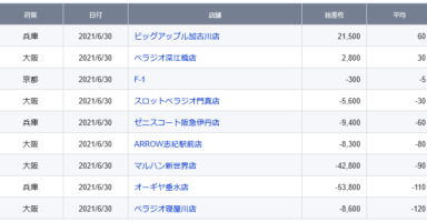 【関西】前日差枚ランキング 2021/6/30(水)関西の店舗府県 日付 店舗 総差枚 平均 兵庫 2021/6/30 ビッグアップル加古川店 21,500 60 大阪 2021/6/30 ベラジオ深江橋店 2,800 30 京都 2021/6/30 F-1 -...