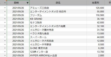 【関西】前日差枚ランキング 2021/5/26関西の店舗府県 日付 店舗 総差枚 平均 兵庫 2021/5/26 アミューズ三田店 125,600 660 京都 2021/5/26 エンターテイメントオメガ 向日市 55,800 530 大阪 2021/5... -