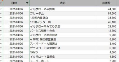【関西】前日差枚ランキング 2021/4/6関西の店舗府県 日付 店舗 総差枚 平均 大阪 2021/4/6 イルサローネ平野店 44,500 280 大阪 2021/4/6 フリーダム 84,300 200 大阪 2021/4/6 123河内長野店 3... -