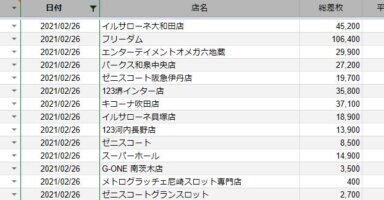 【関西】前日差枚ランキング 2021/2/26関西の店舗府県 日付 店舗 総差枚 平均 大阪 2021/2/26 イルサローネ大和田店 45,200 330 大阪 2021/2/26 フリーダム 106,400 250 京都 2021/2/26 エンターテ... -